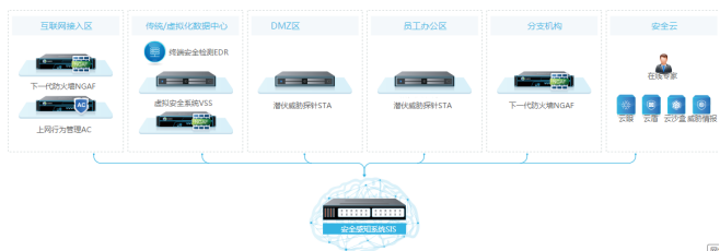 · 将全网的风险进行可视化的呈现,一旦发生安全事件,能够快速定位出哪个分支还是总部的问题